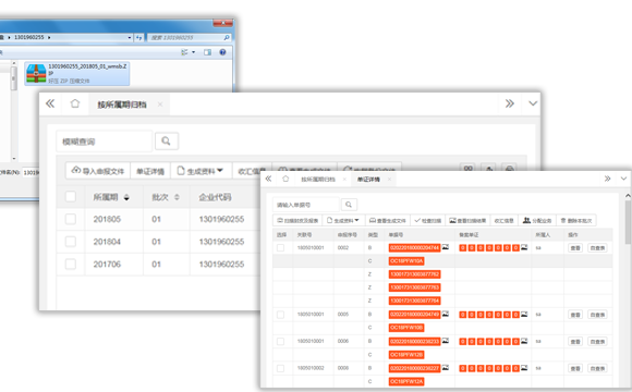 导入申报系统生成的申报盘文件,根据申报盘快速创建所属期和业务信息,并将日常归档的业务根据报关单号关联到该所属期下。